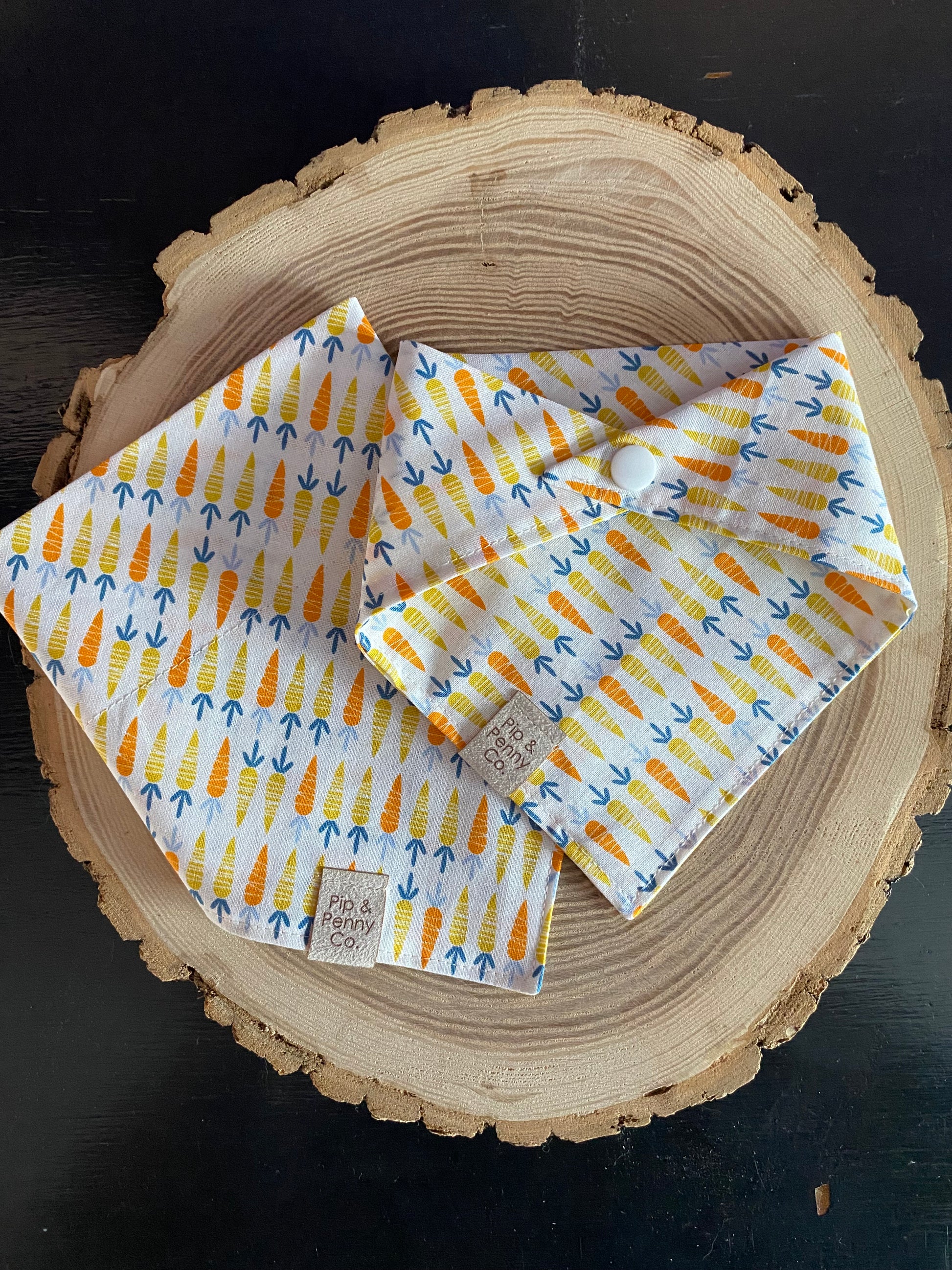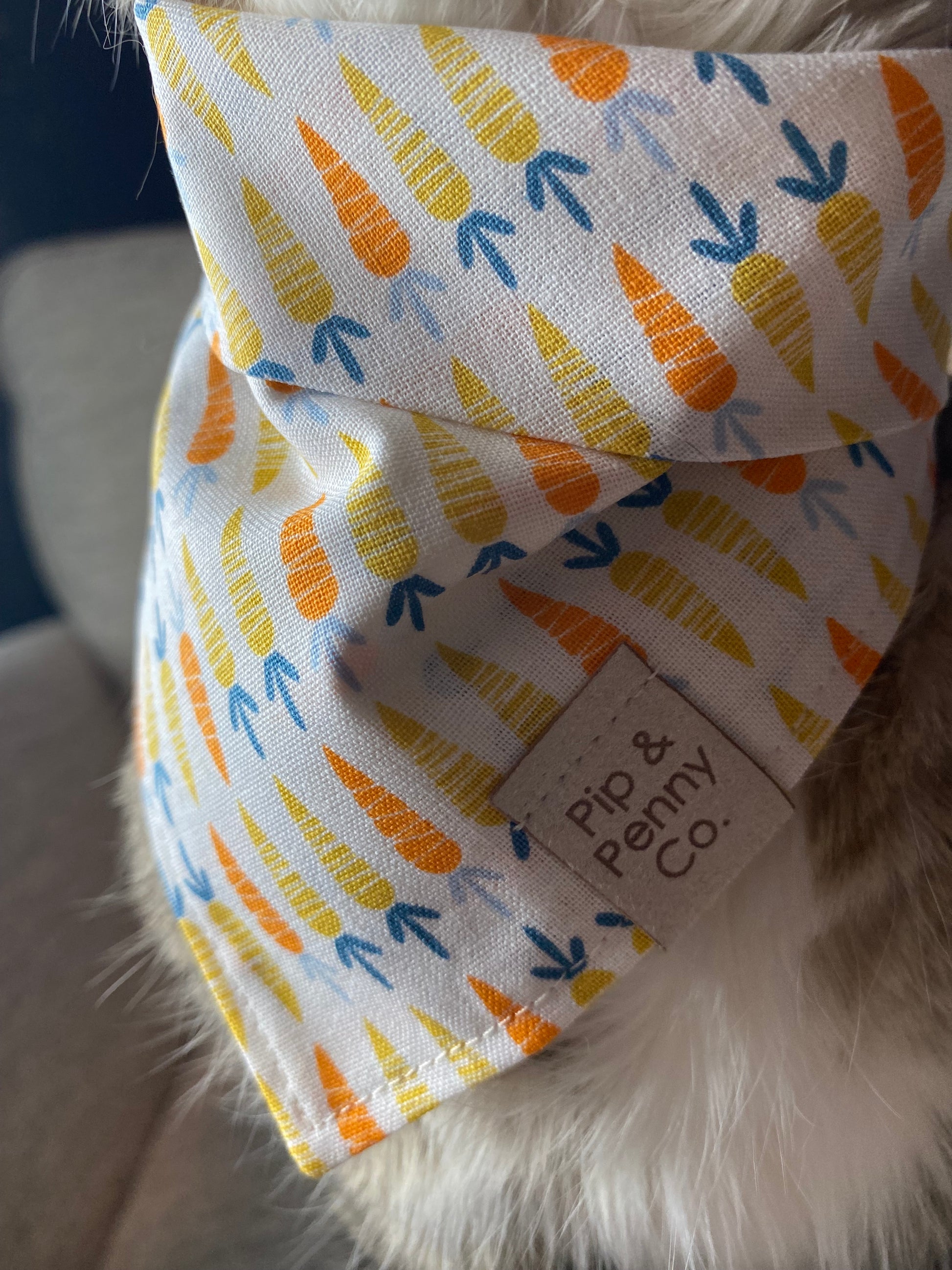 Collar Bandanas: Our collar bandanas slide on to your pet's existing collar. You'll want the bandana to be no more than half the length of your pet's collar.