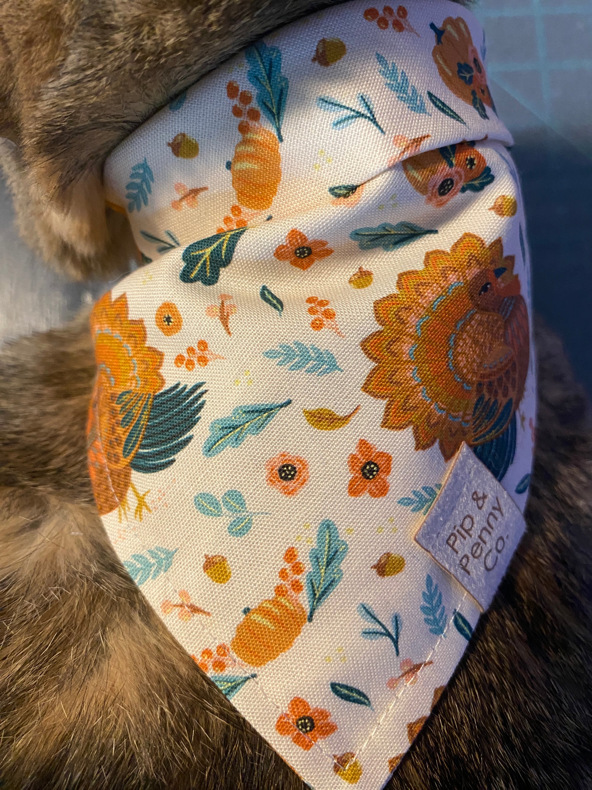 Collar Bandanas: Our collar bandanas slide on to your pet's existing collar. You'll want the bandana to be no more than half the length of your pet's collar.
