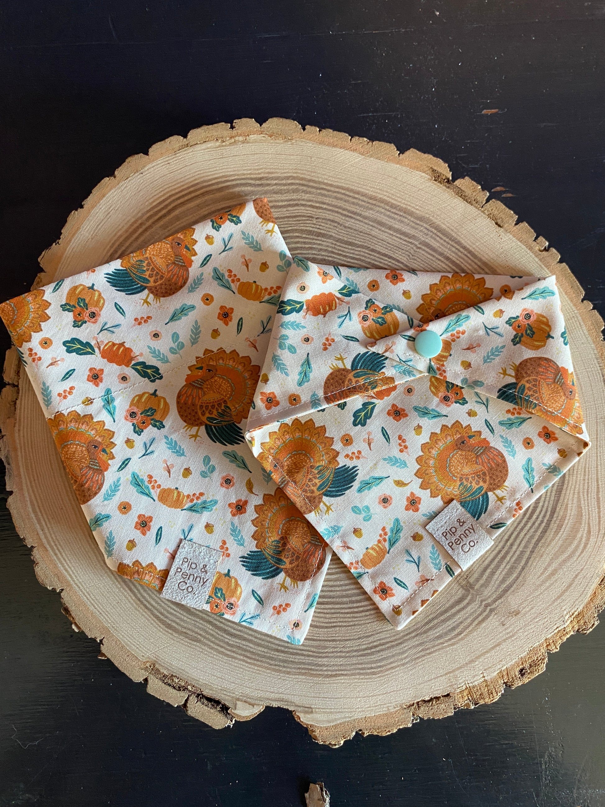 Snap Bandanas: Measure your pet's neck not their collar. If you're in between sizes, size up, the bandana can always be tied to fit smaller. Each bandana has 2 snaps one inch apart (except the Extra Small).