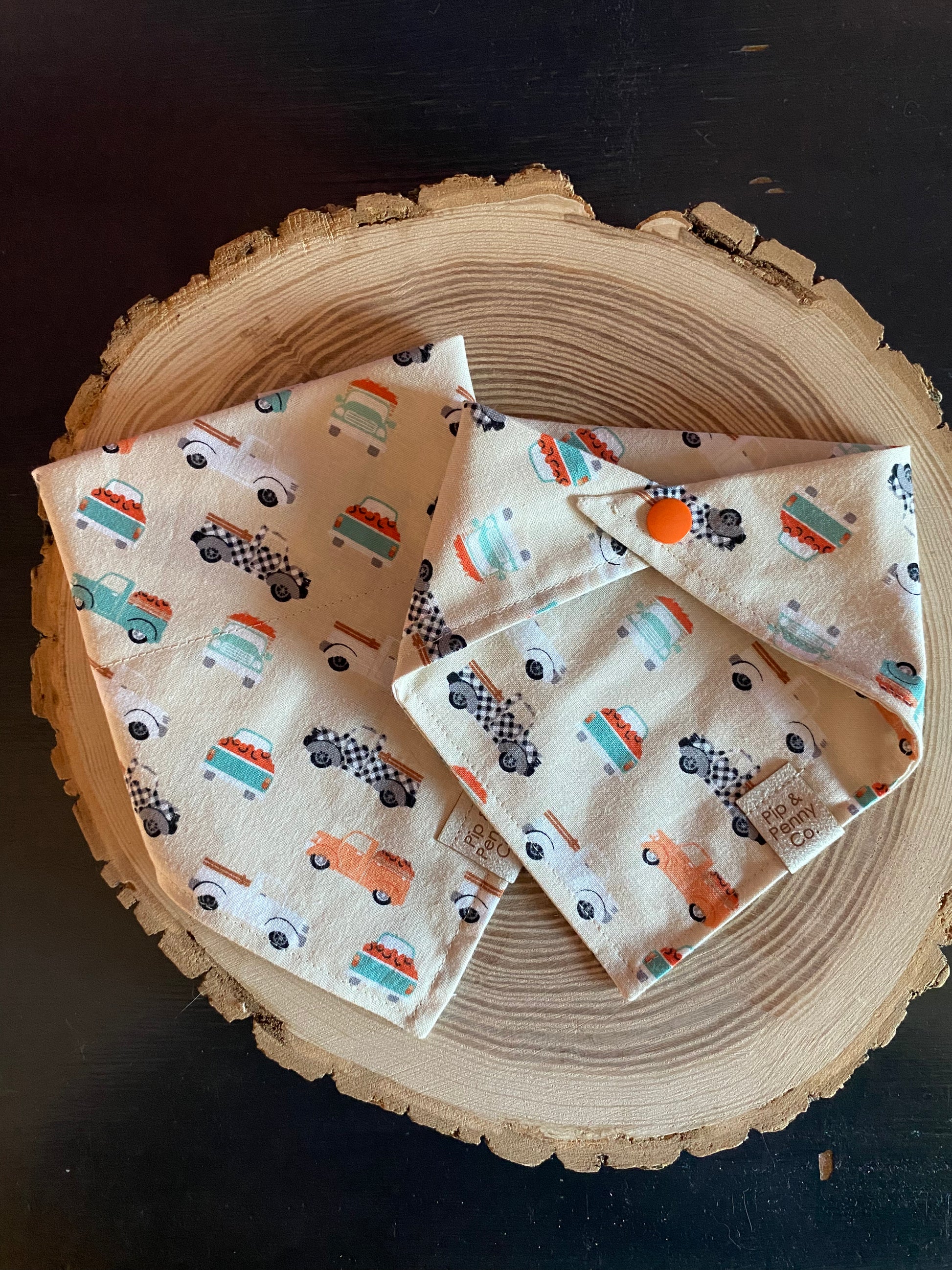 Collar Bandanas: Our collar bandanas slide on to your pet's existing collar. You'll want the bandana to be no more than half the length of your pet's collar.