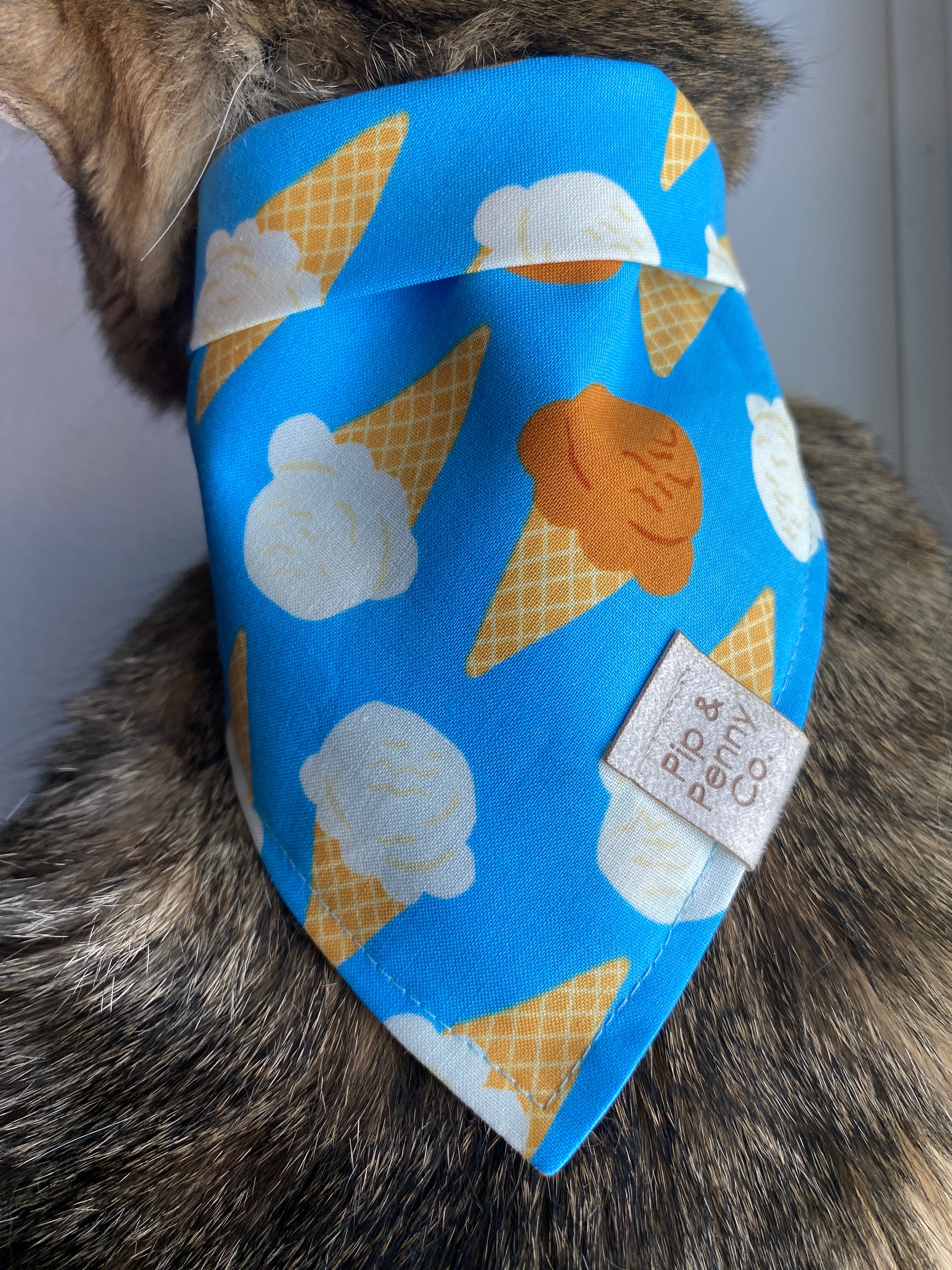 Collar Bandanas: Our collar bandanas slide on to your pet's existing collar. You'll want the bandana to be no more than half the length of your pet's collar.
