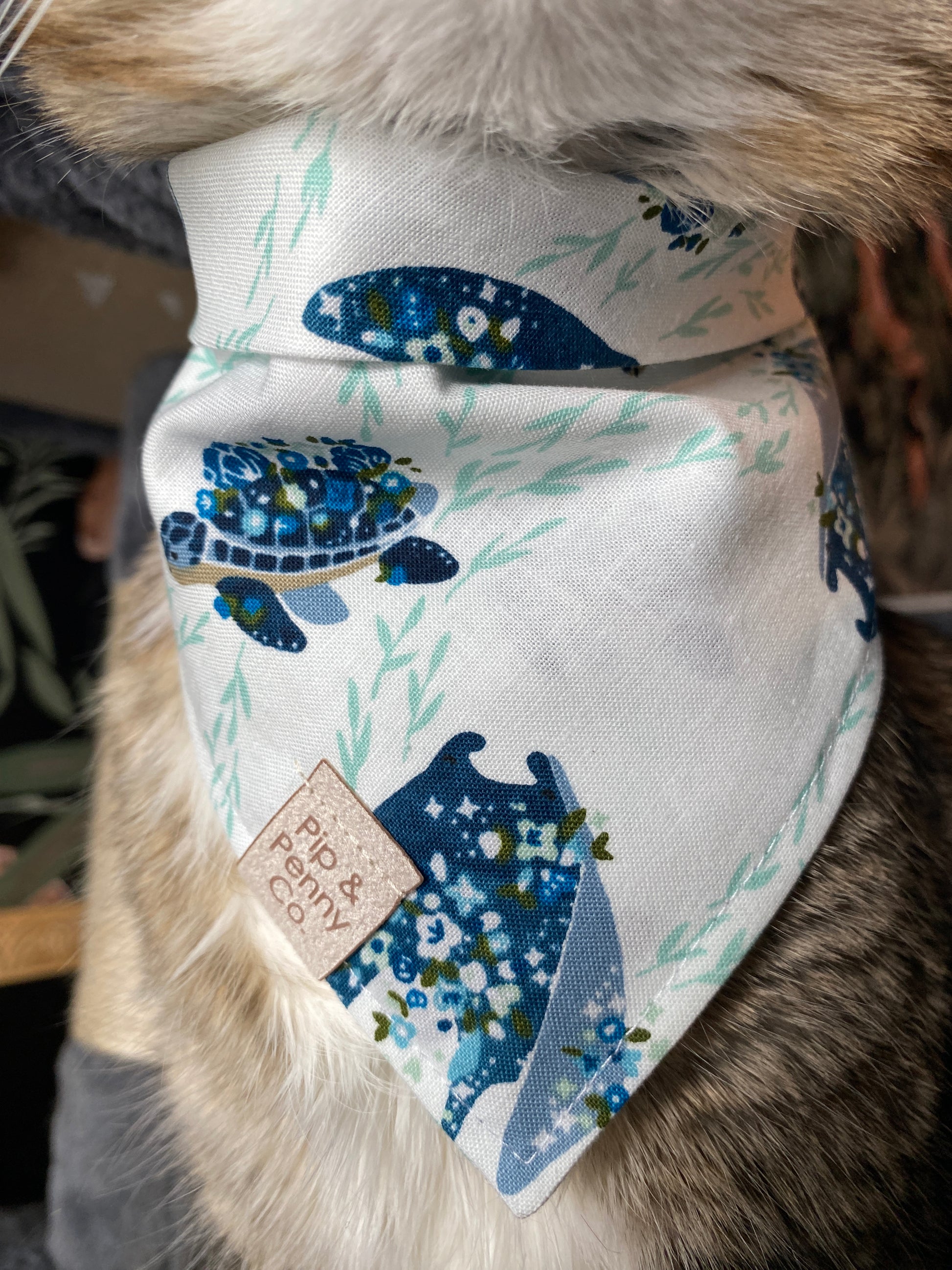 Collar Bandanas: Our collar bandanas slide on to your pet's existing collar. You'll want the bandana to be no more than half the length of your pet's collar.