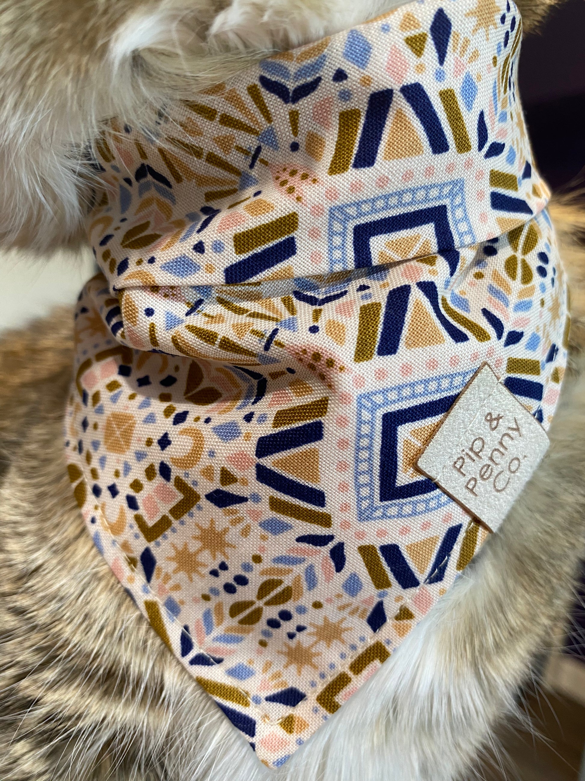 Collar Bandanas: Our collar bandanas slide on to your pet's existing collar. You'll want the bandana to be no more than half the length of your pet's collar.