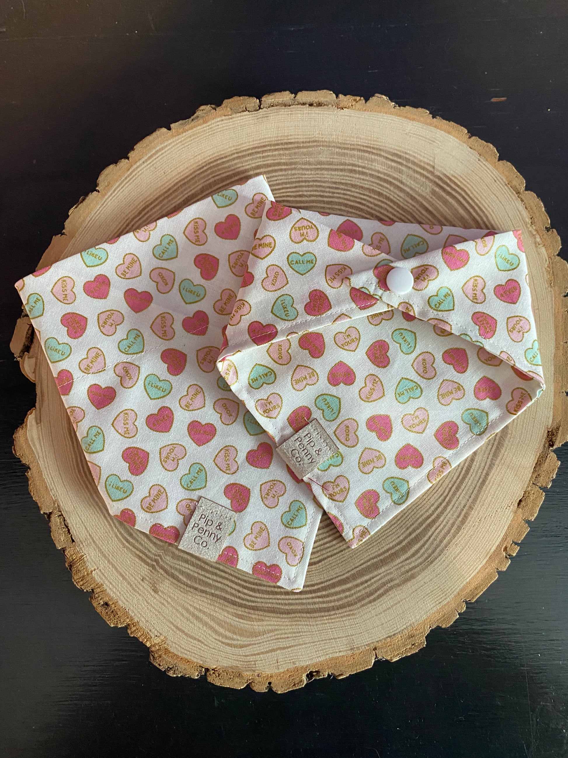 Each bandana and bow are hand made with care and for this reason the orientation of the fabric may be different on each item depending on the pattern of the fabric.