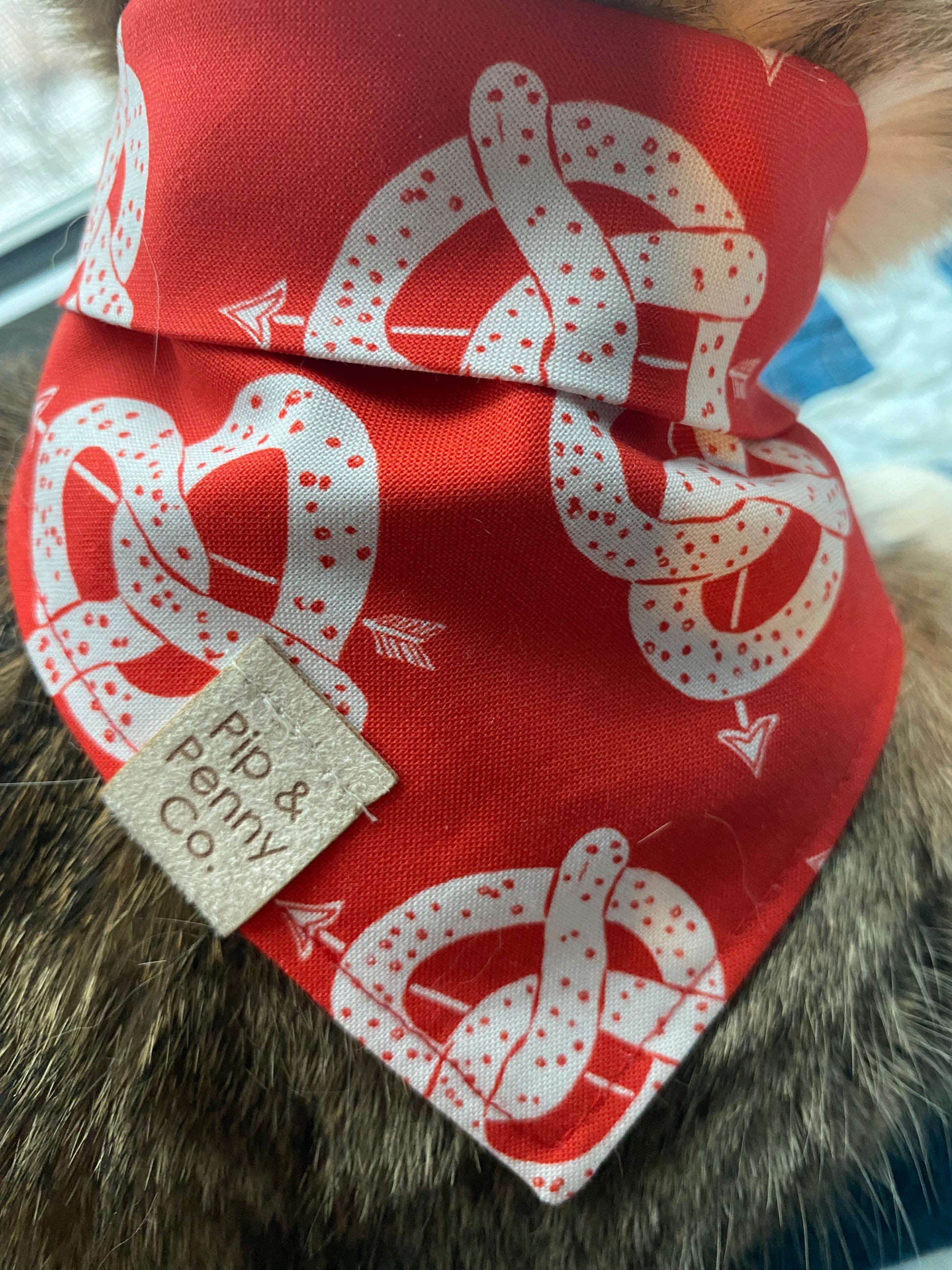 Collar Bandanas: Our collar bandanas slide on to your pet's existing collar. You'll want the bandana to be no more than half the length of your pet's collar.