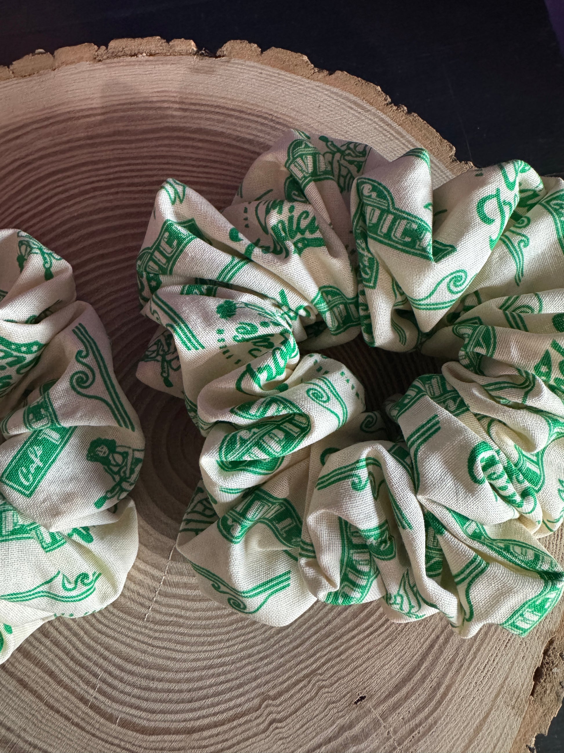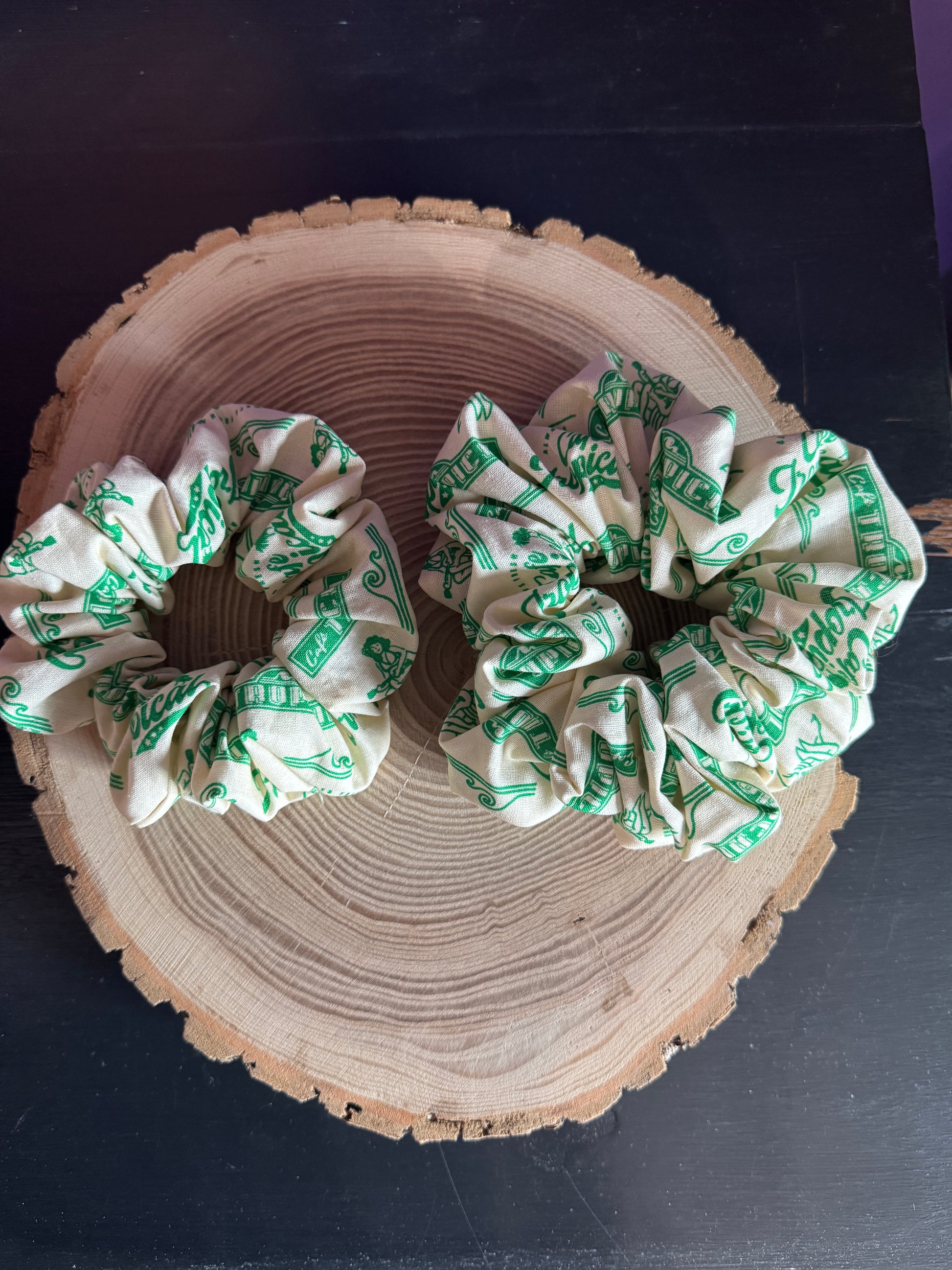 1/4” flat elastic inside which is stitched together so that it holds together well. They will wrap around 2-3 times depending on hair thickness.