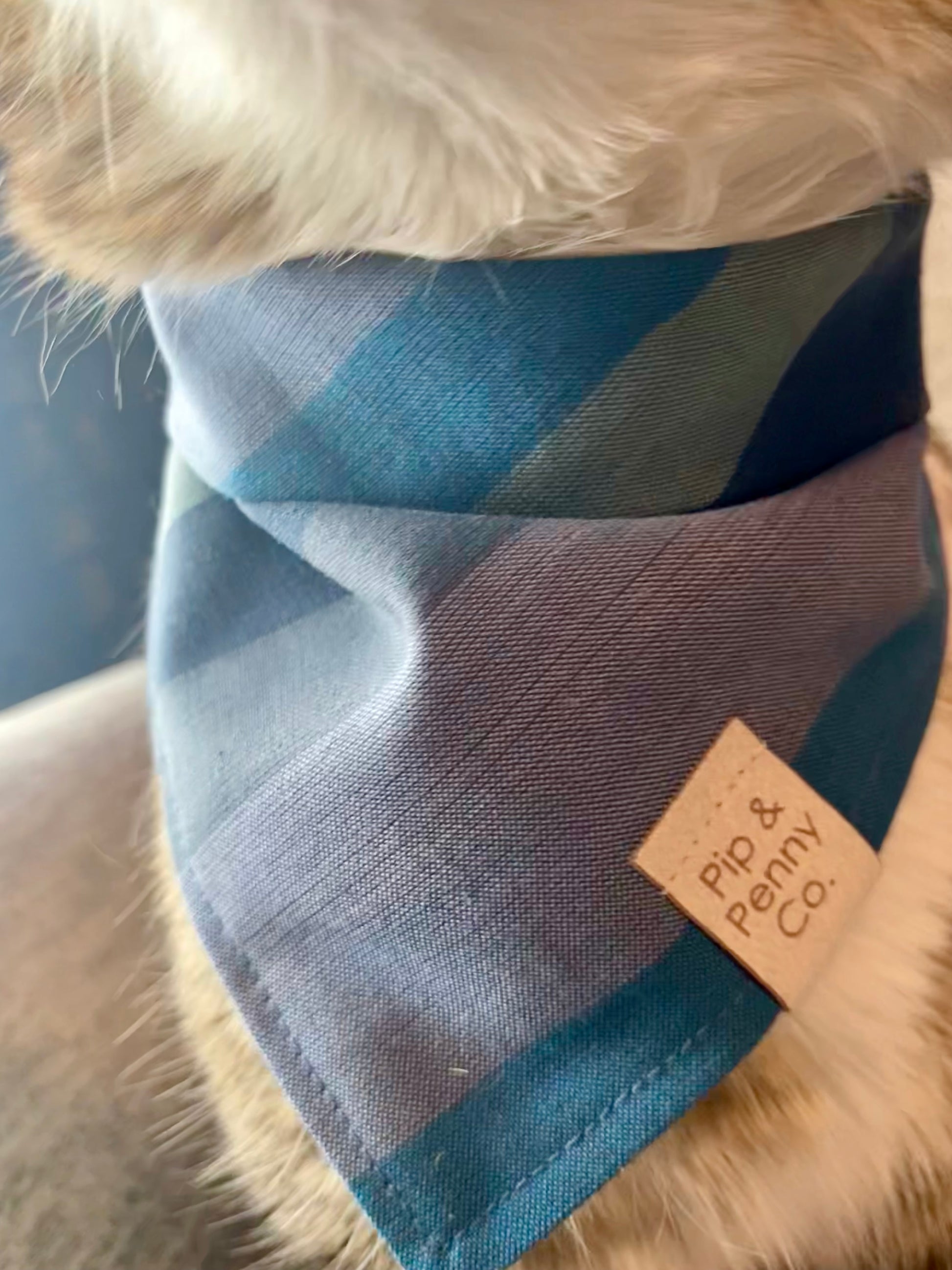 Collar Bandanas: Our collar bandanas slide on to your pet's existing collar. You'll want the bandana to be no more than half the length of your pet's collar.