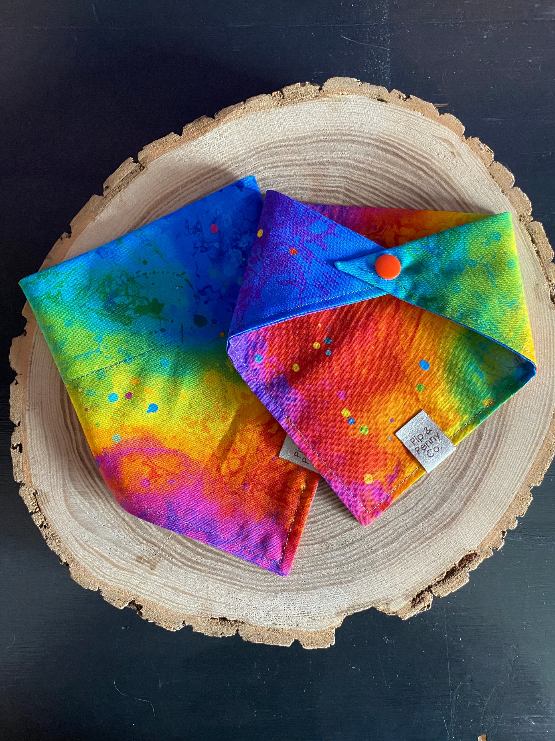 Snap Bandanas: Measure your pet's neck not their collar. If you're in between sizes, size up, the bandana can always be tied to fit smaller. Each bandana has 2 snaps one inch apart (except the Extra Small).