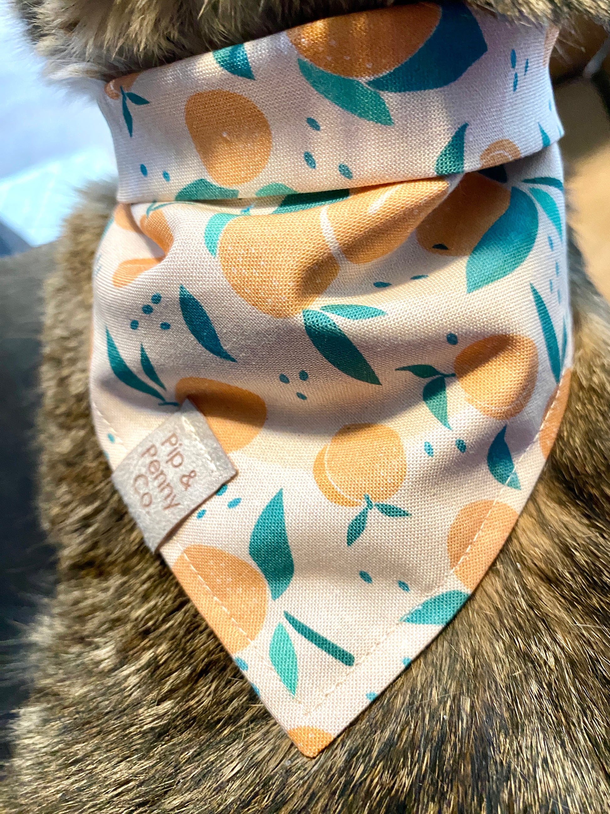 Collar Bandanas: Our collar bandanas slide on to your pet's existing collar. You'll want the bandana to be no more than half the length of your pet's collar.