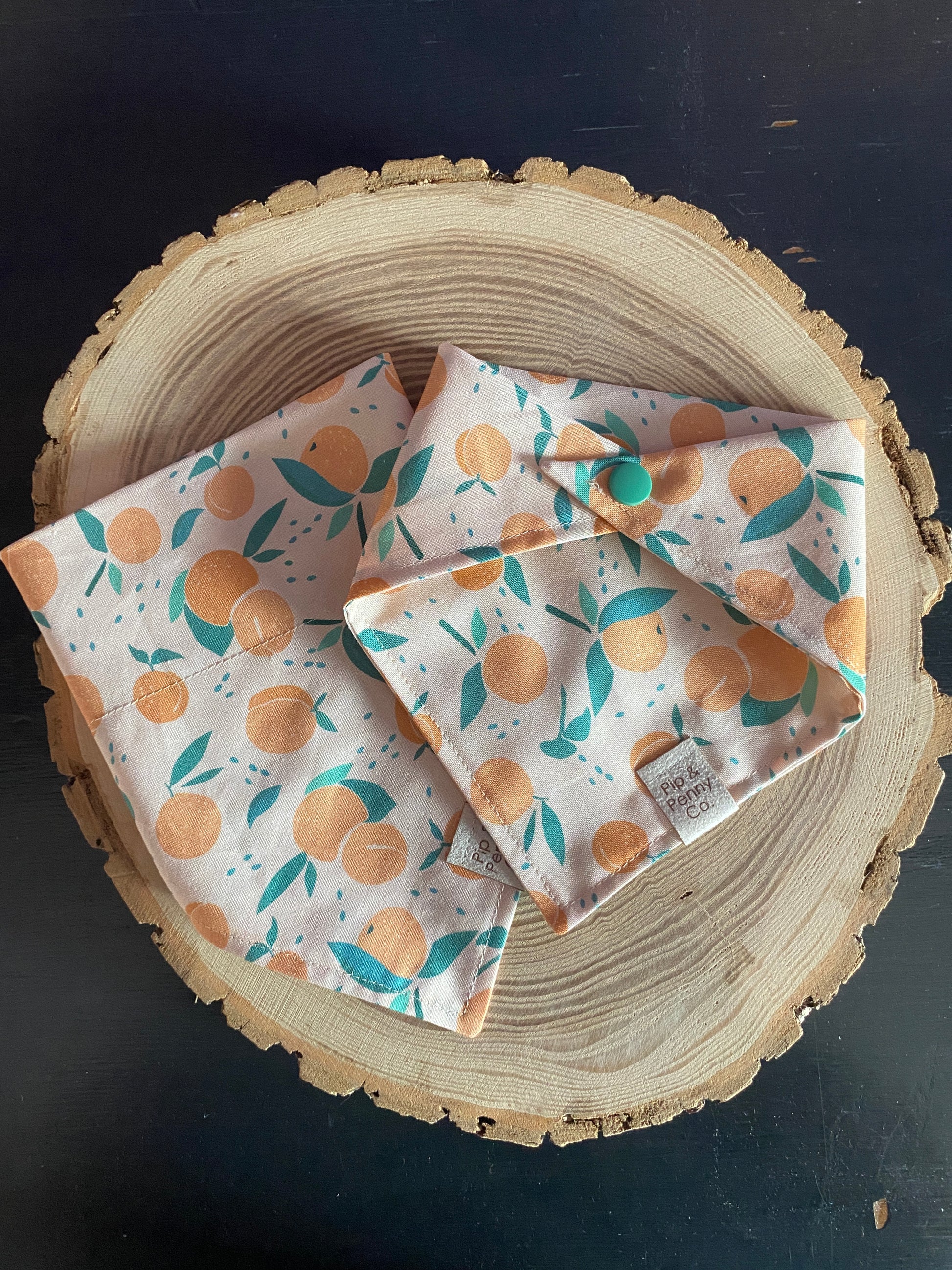Each bandana and bow are hand made with care and for this reason the orientation of the fabric may be different on each item depending on the pattern of the fabric.