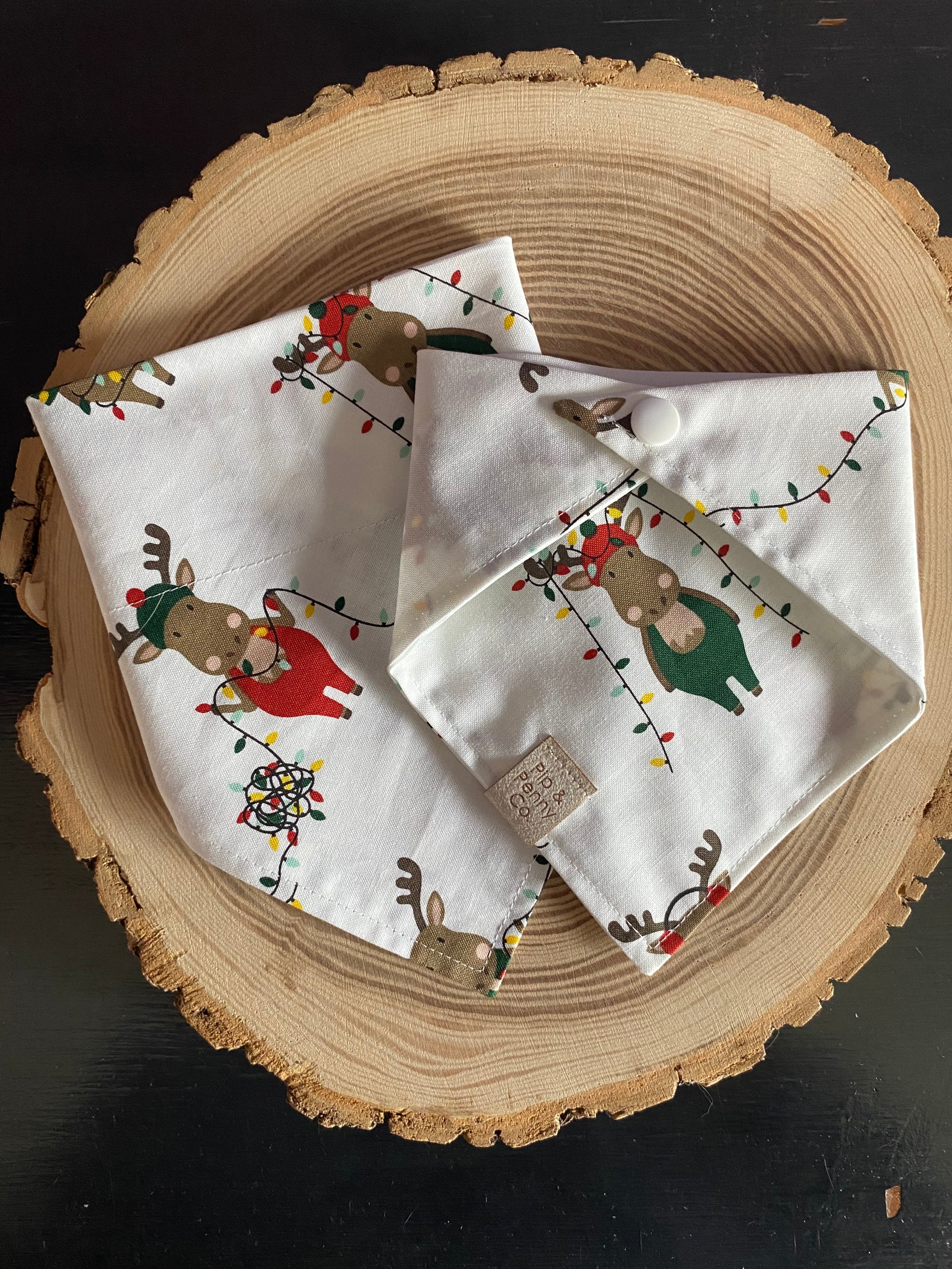 Each bandana and bow are hand made with care and for this reason the orientation of the fabric may be different on each item depending on the pattern of the fabric.