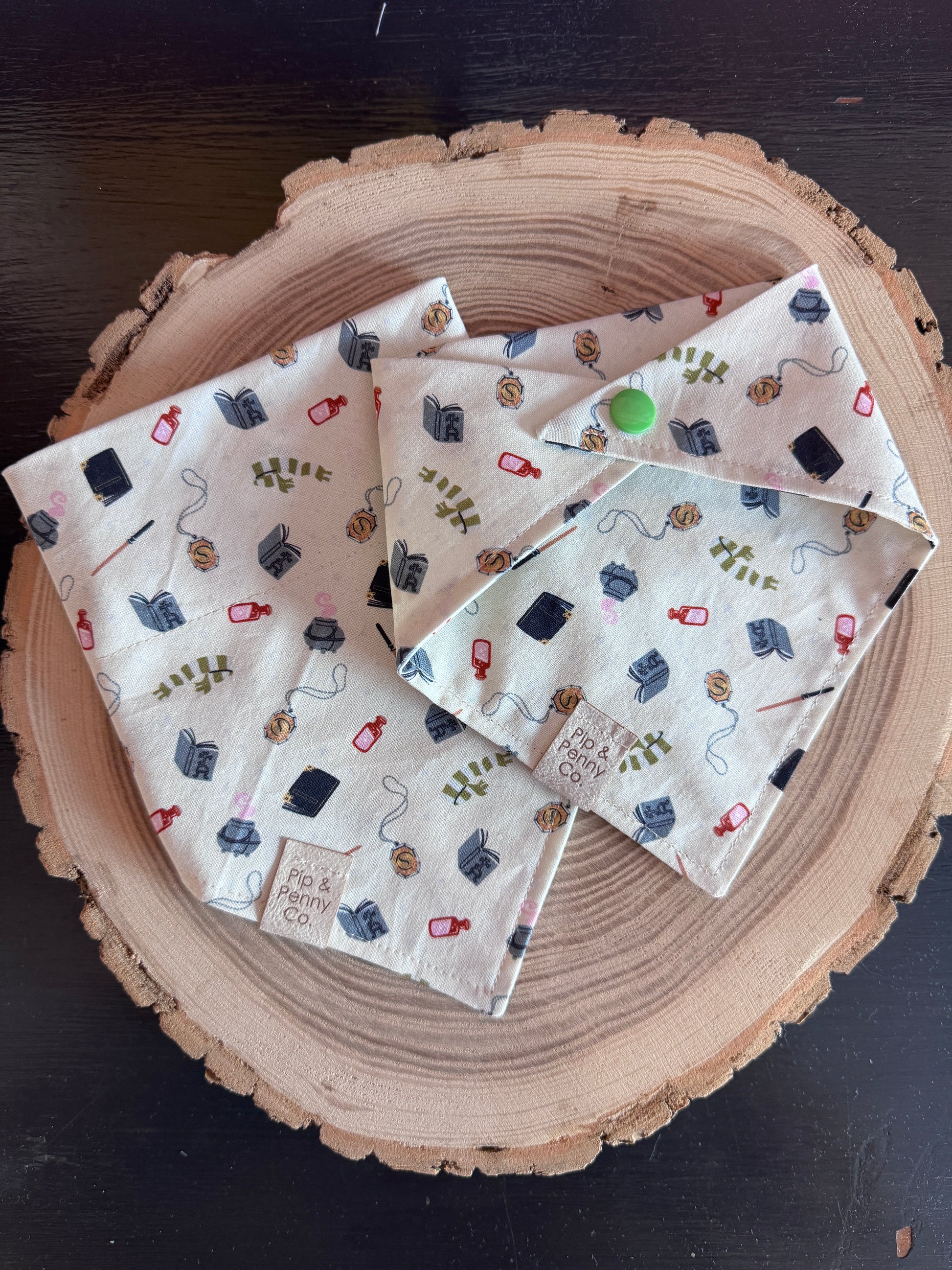 Each bandana and bow are hand made with care and for this reason the orientation of the fabric may be different on each item depending on the pattern of the fabric.